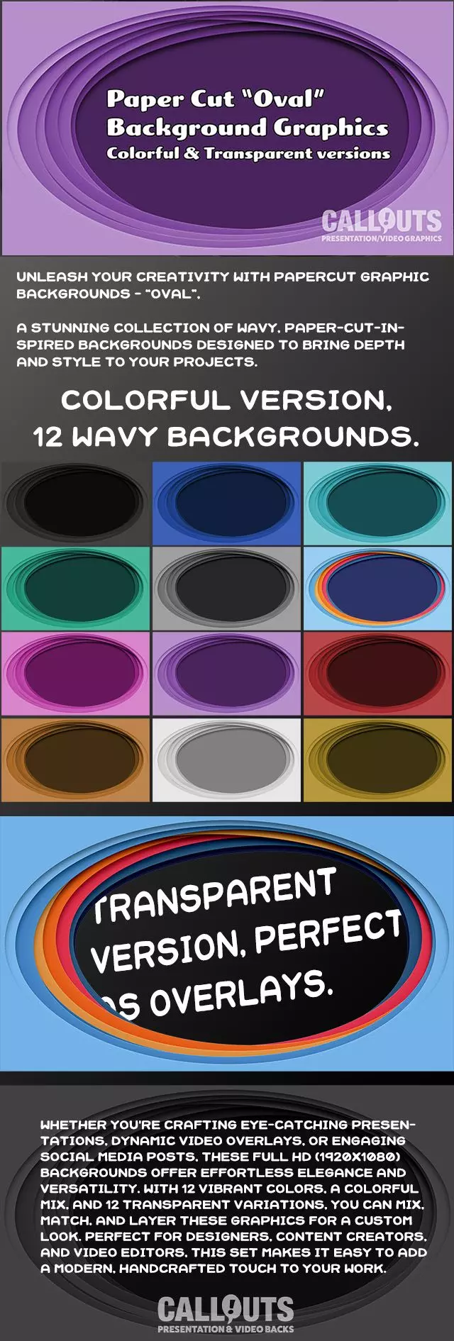 Add organic flow and playful movement to your next creative project with this oval-themed PaperCut pack. Just like the vertical mix, this one includes 12 colors and 12 transparent overlays.