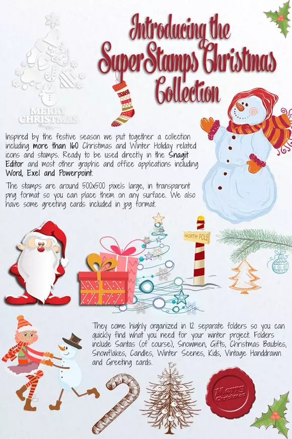 SuperStamps Christmas – 160 Christmas related stamps you can use directly in Snagit. Monthly bonus, available for a limited time only.