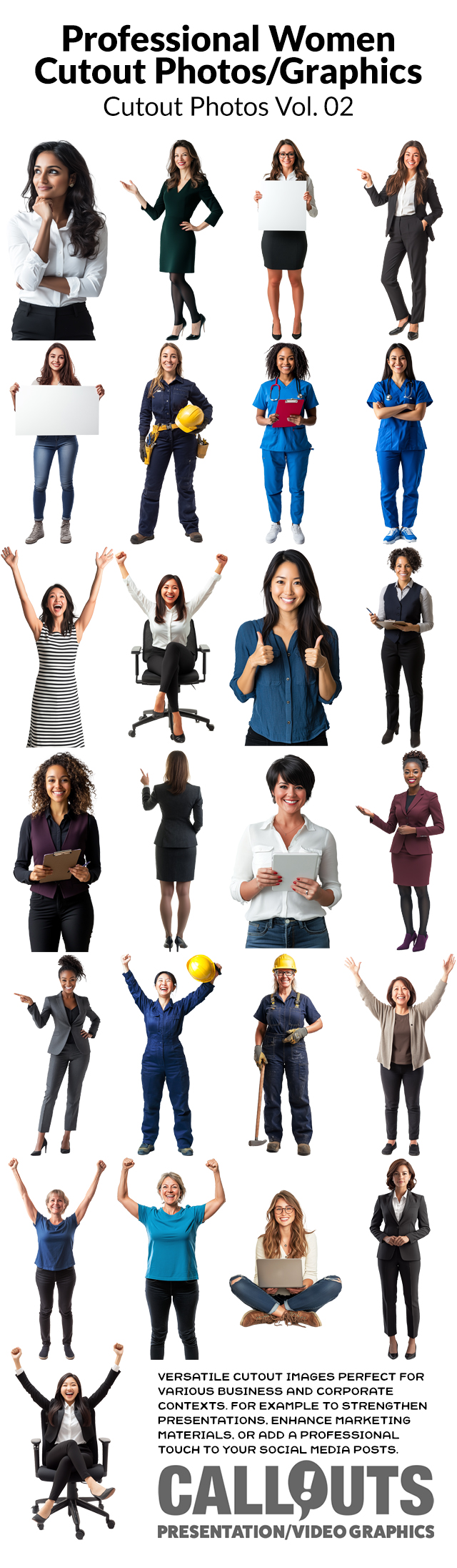 Confident Businesswoman Showcasing a Blank Sign – Cutout Graphics