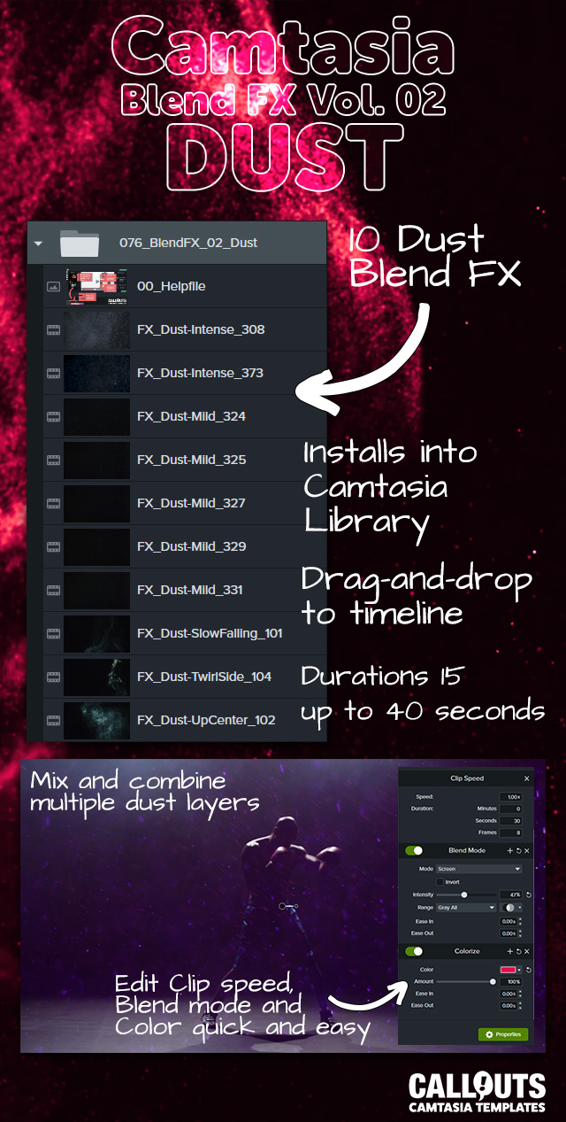 Ten new Dust Blend Effects for Camtasia, version 2022 and later!