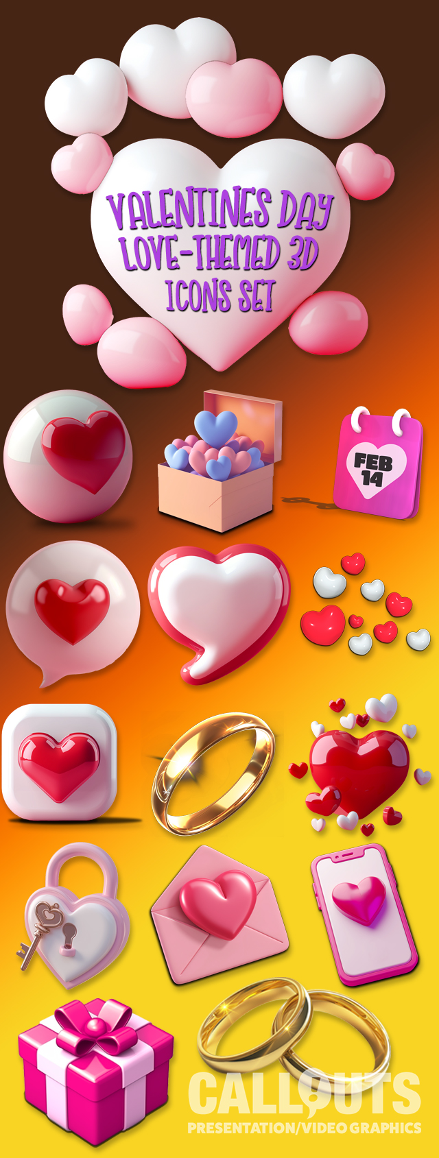 15 Modern 3D-style romantic graphics, perfect for Valentine’s Day.