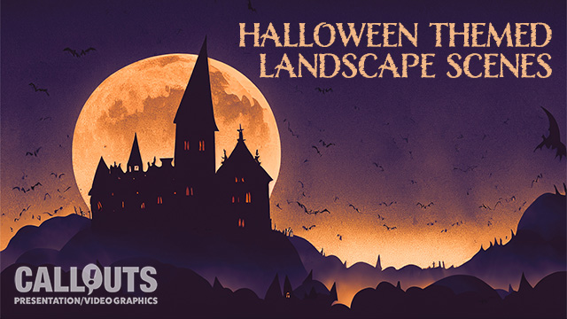 Premiere for ten new Halloween-themed landscape scene graphics.