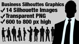 In this collection you will find various business and dance related silhouettes perfect for your reports, presentations, Powerpoints, videos and more. Each graphic file is between 600 to 800 pixels high, PNG transparent format. They are well suited for example for HD video.