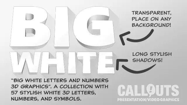 These big white 3D letters and numbers are clean, modern, and incredibly versatile. Use them for headlines, chapter markers, countdowns, pricing slides, or moments where you want something to stand out — without overpowering everything else.