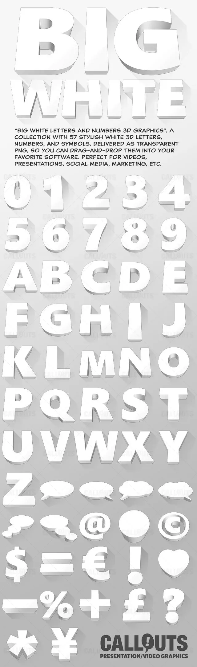 Big White Letters and Numbers – 3D Graphics