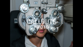 Young Teenage Boy Going Through Eye Exam 02, Ophthalmic Testing Device