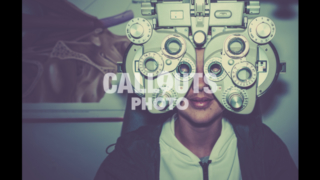 Young Teenage Boy Going Through Eye Exam, Ophthalmic Testing Device, Closeup, Vintage Styled
