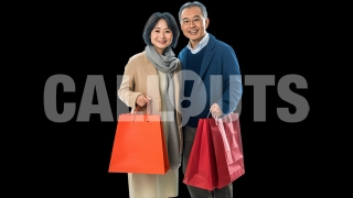 ​Japanese Couple Shopping with Bags – Cutout Graphics