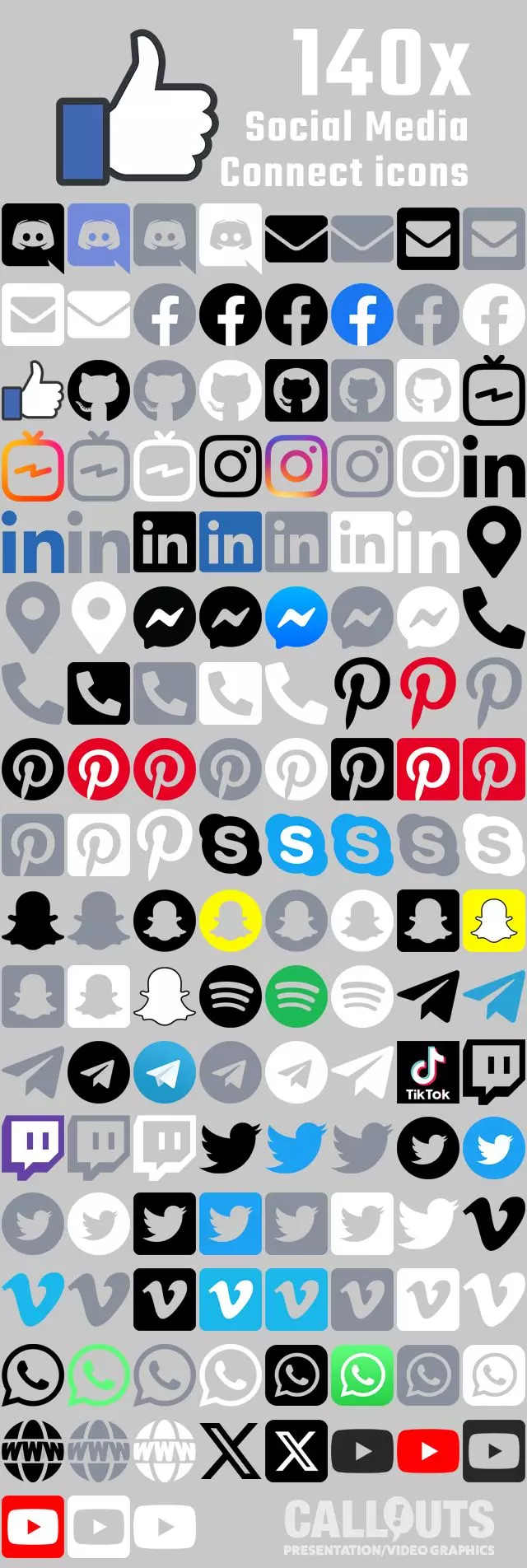Elevate your creative projects with our meticulously crafted collection of 140 stunning social media icons. Designed to effortlessly enhance your graphics, videos, and presentations, these icons simplify the process of guiding your audience to discover and engage with your business on various social platforms.